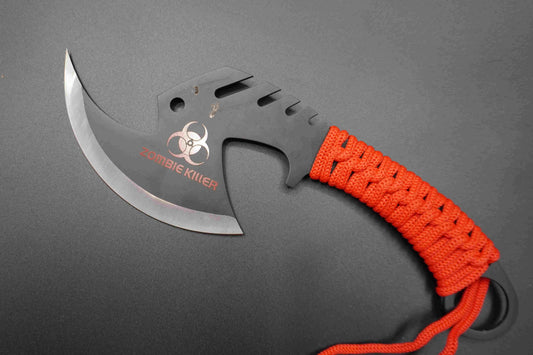 Zombie Killer Skull splitter Throwing Fixed Blade Axe in Green & Red | Hatchet Camping Survival Knife