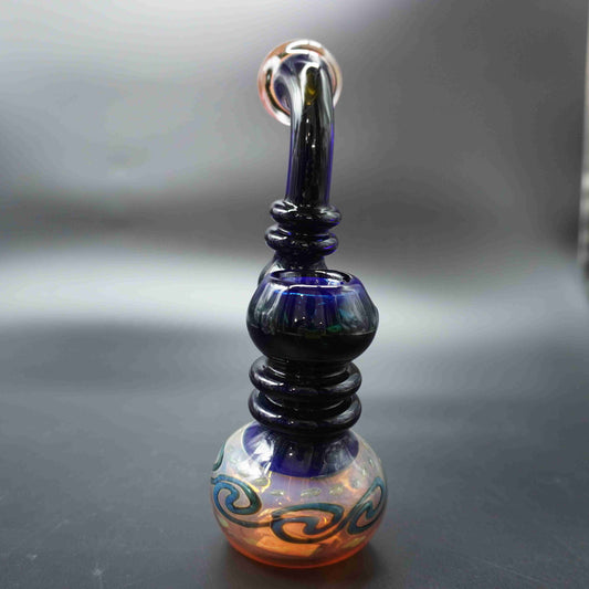 7.5" Fumed Bubbler: This beautiful bubbler boasts a captivating fumed design, making it a true standout. Its compact size makes it easy to handle and transport, while still delivering a fantastic smoking experience. Consider pairing it with one of our stylish silicone pipes for an added touch of color or functionality.