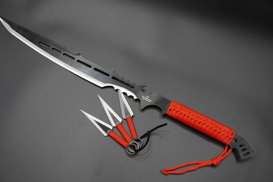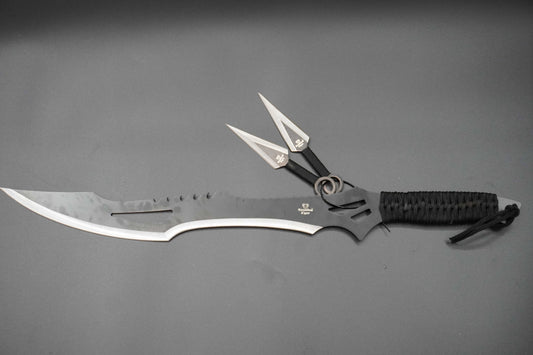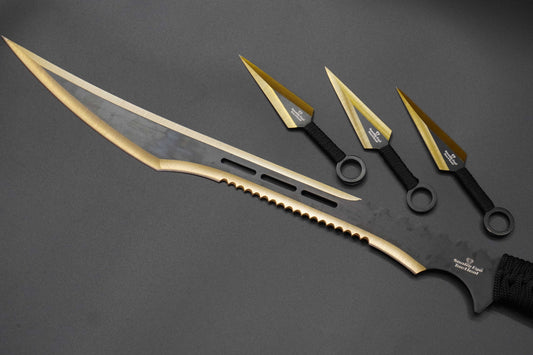 Ninja Sword and Kunai Blue Set | Fixed Blade with 3 Throwing Knives Set