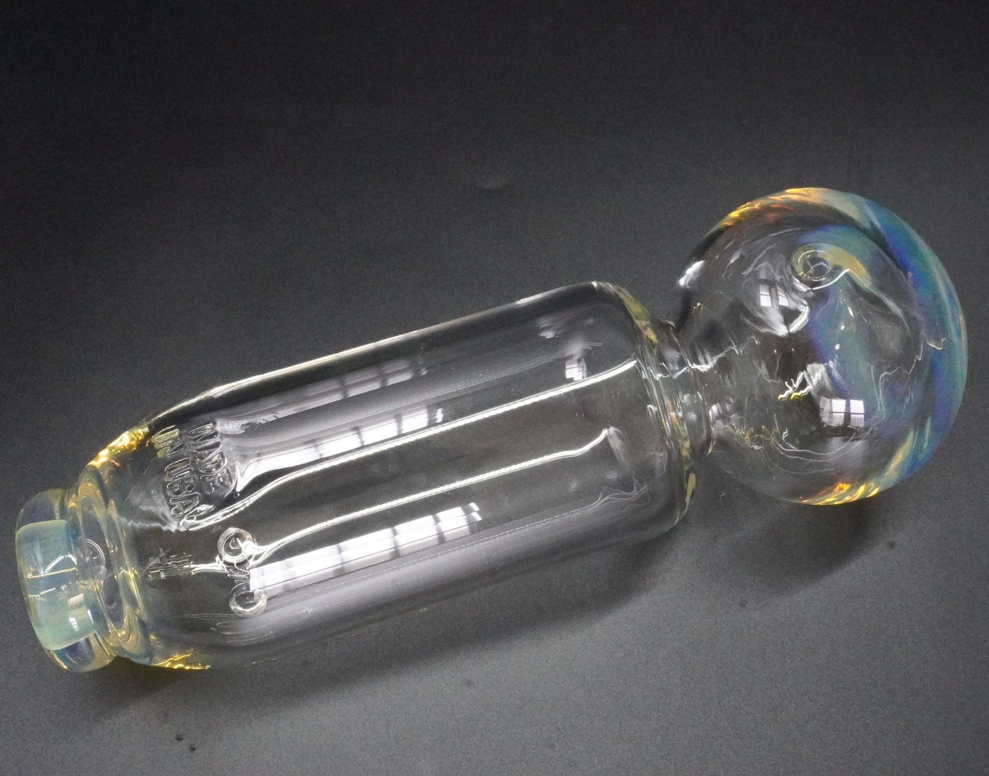Product Overview: This professional-grade glass oil burner is designed for durability and performance. It features a classic "bubble" reservoir and a thick, tapered stem. Unlike mass-produced alternatives, this piece is clearly marked as domestically made, ensuring a higher standard of glasswork and material quality.