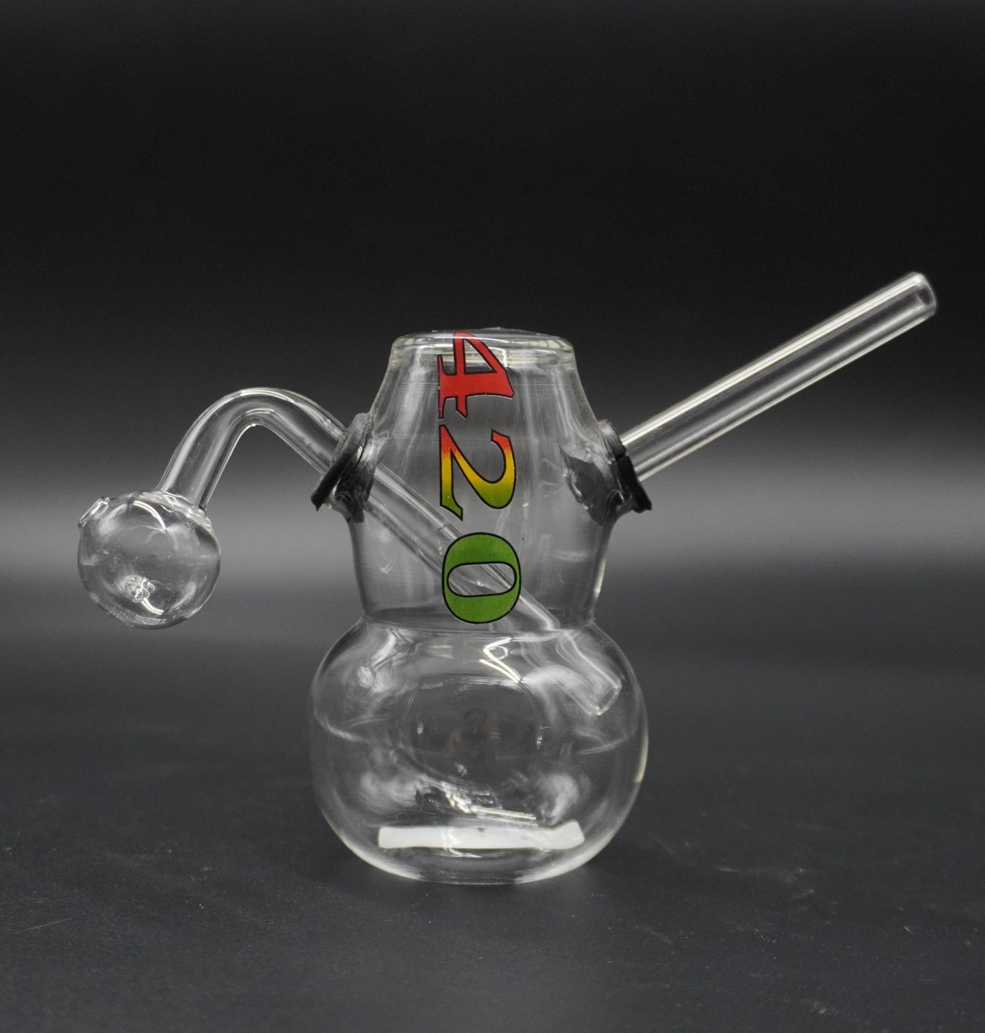 Crafted from clear, durable glass, this oil burner allows you to fully observe the vaporization process, giving you precise control over your sessions. Its comfortable mouthpiece and efficient bubble stem are designed for smooth, effective vaporization of your concentrates or essential oils, ensuring pure and enjoyable draws every time. The "Vibe Flask" is perfect for discreet sessions, easy handling, and showcasing your unique personality.