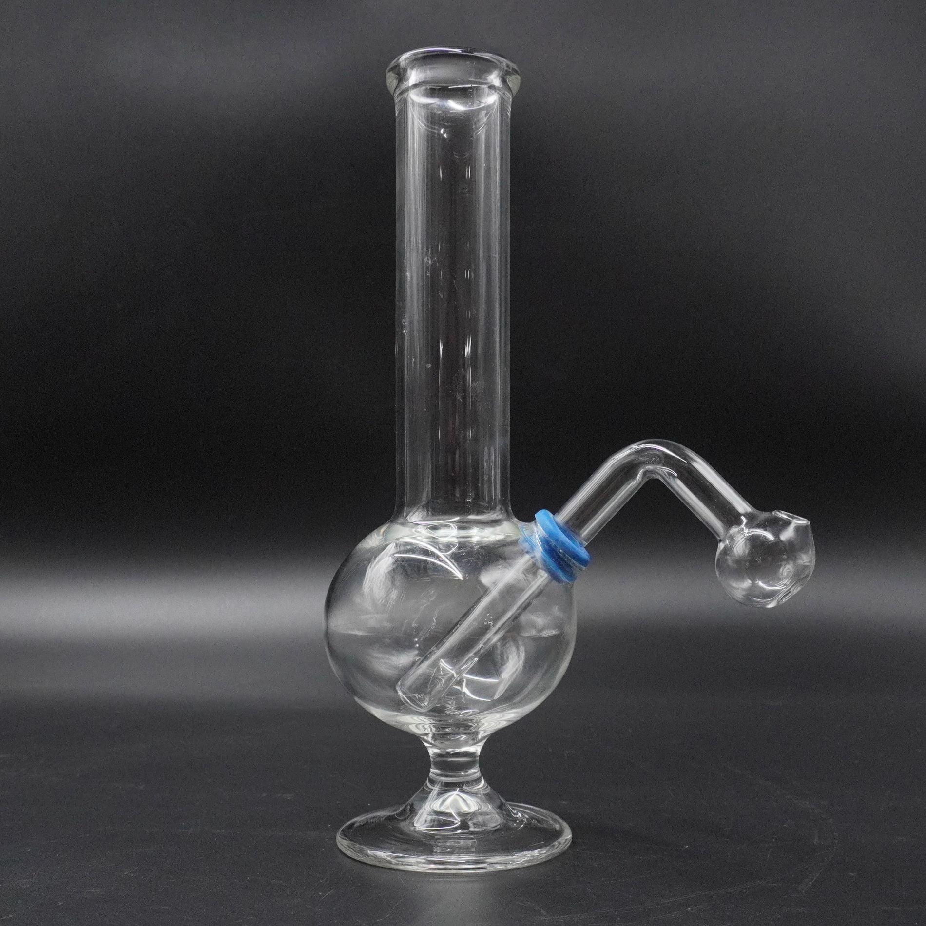 Elevate your collection with this elegant Pedestal Base Glass Burner Pipe. Combining a classic straight tube with a generous globe-shaped chamber and a stable, flared pedestal foot, this piece offers exceptional balance and a refined look that stands out on any surface.