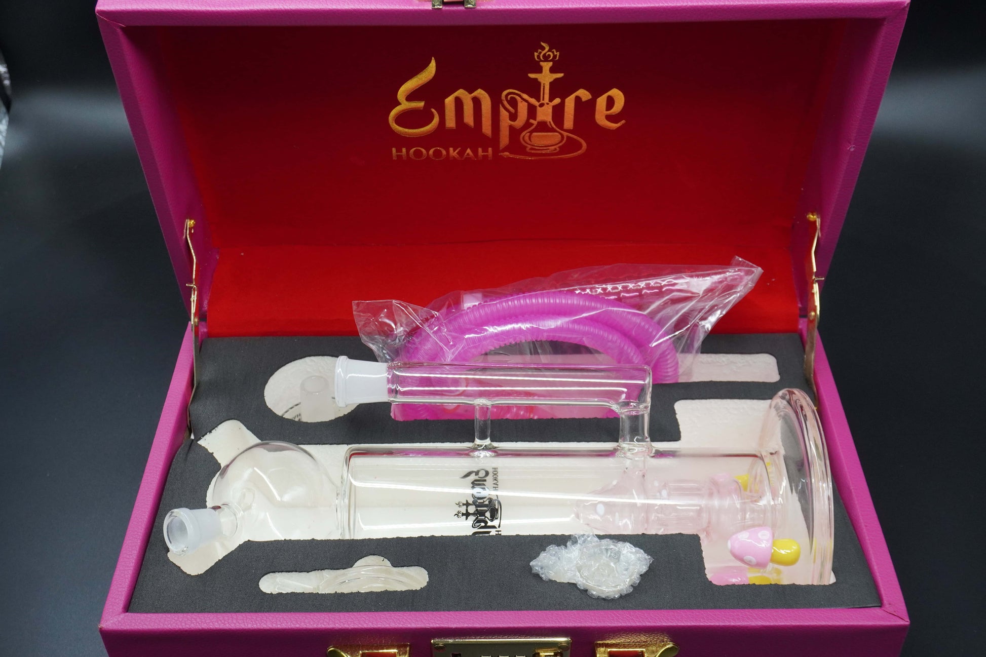 Indulge in a hookah experience that's as enchanting as it is smooth with the Empire Hookah "Princess Palace" Portable Pink Glass Hookah Kit! This stunning and unique hookah set combines sophisticated glass artistry with a playful, vibrant aesthetic, making it the ultimate accessory for those who love to express their style.
