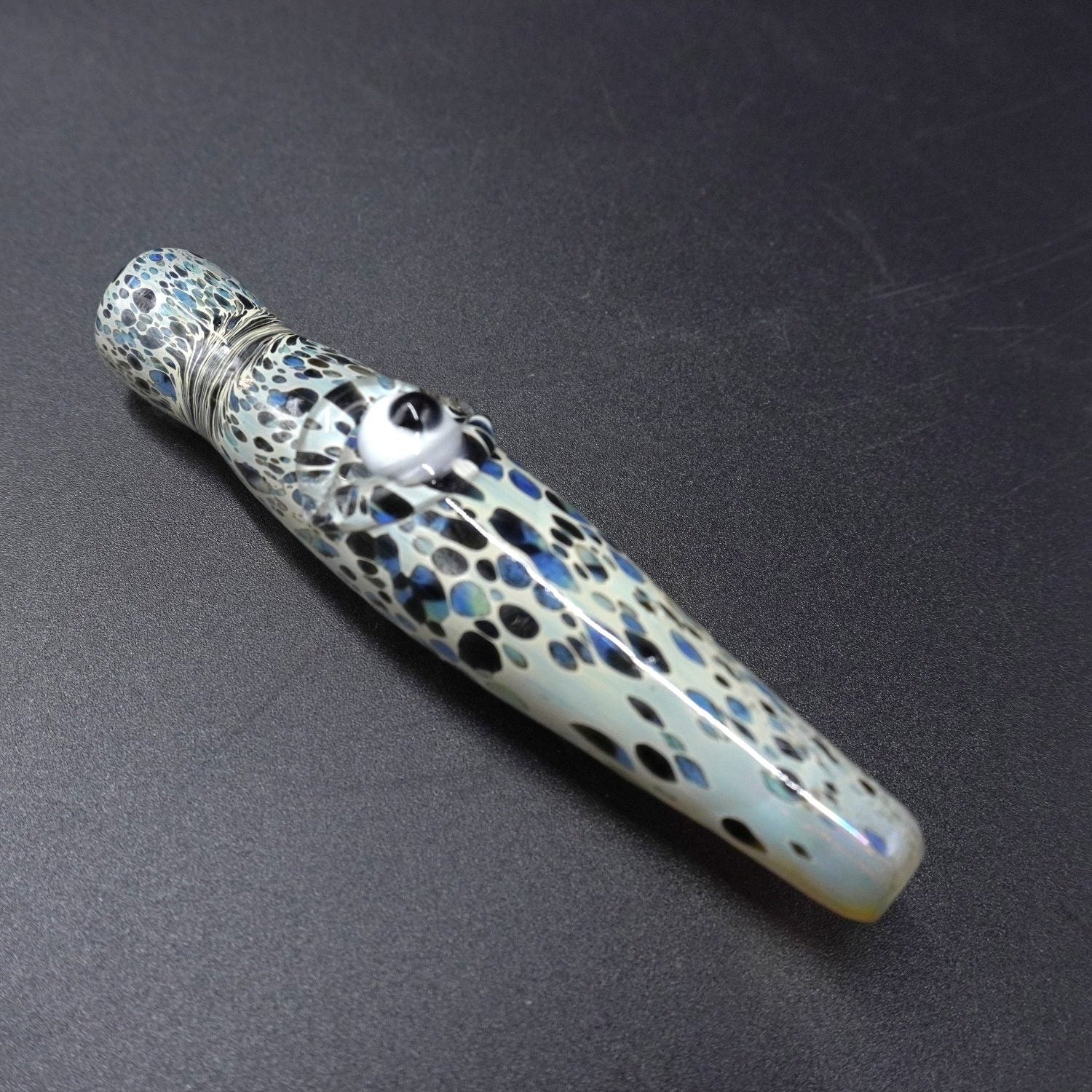 Keep an eye on your new favorite piece. This is no ordinary chillum—it's a hand-blown work of art designed to stand out. Crafted from high-quality, durable borosilicate glass, "The Oculus" combines intricate patterns with a functional, artistic focal point.