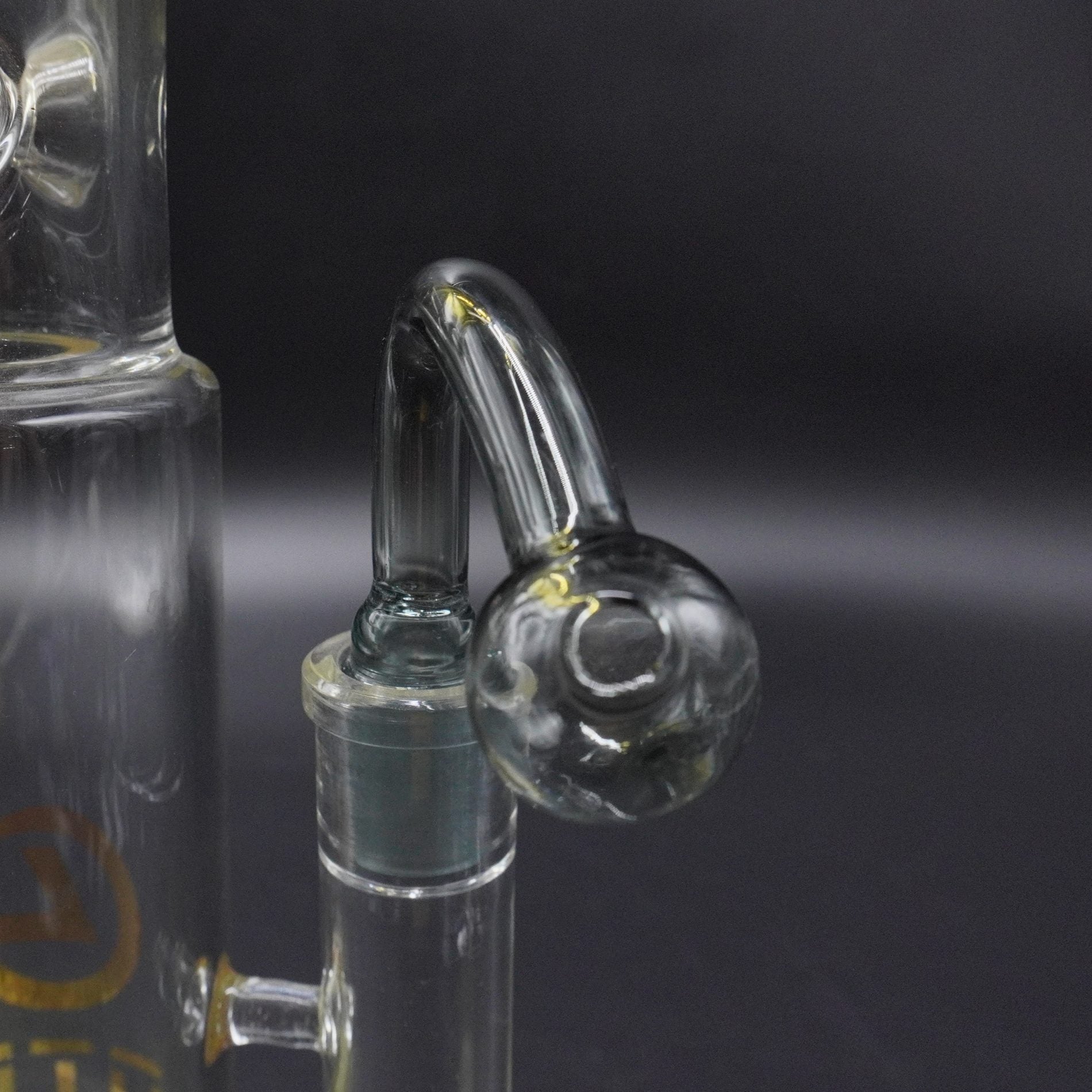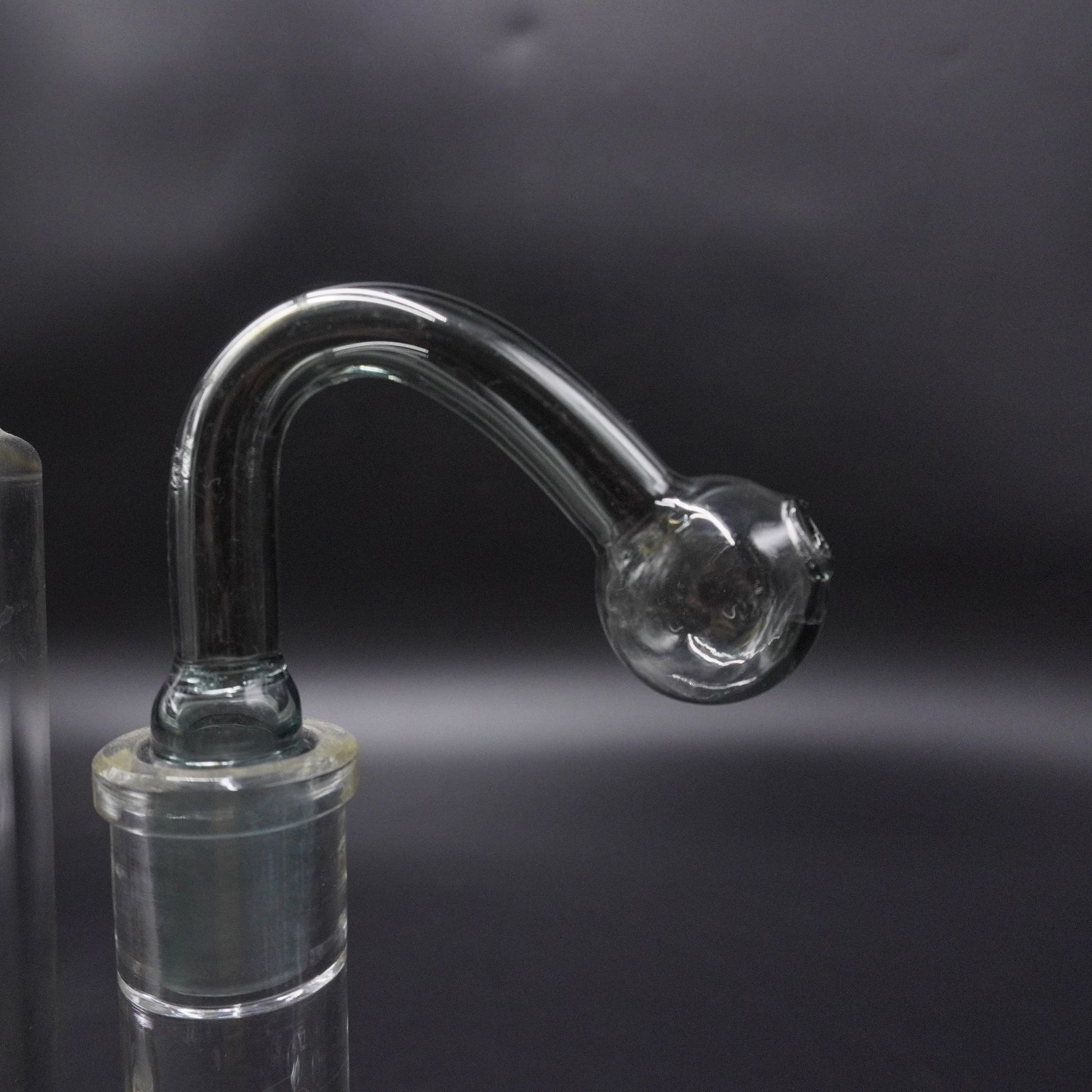 A classic, no-nonsense replacement oil burner attachment. This piece is made of clear, durable glass and features a curved J-hook arm and a spherical bowl. It's the perfect, simple solution to replace a lost or broken part and get your water pipe working like new again.