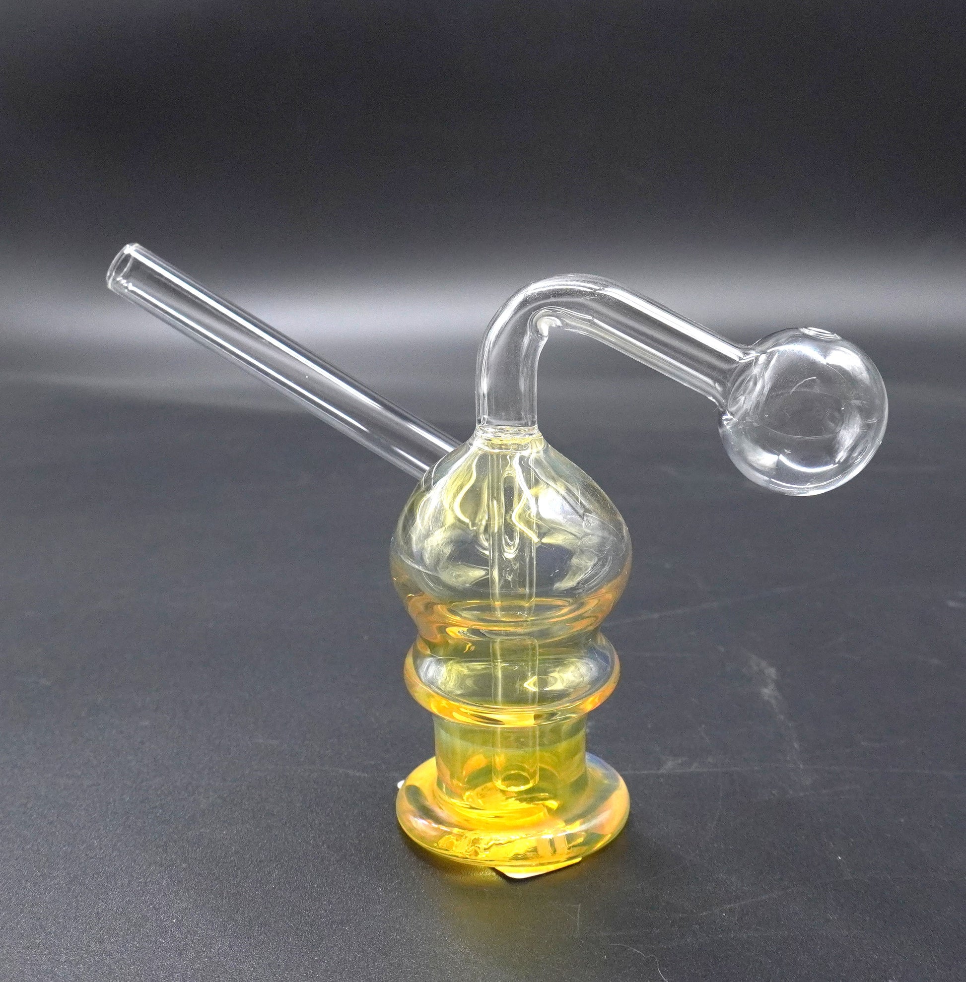 Discover the artistry of glass with this unique Mini Fumed Glass Oil Burner. Crafted from high-quality glass, this piece features a captivating fumed finish, where a special glassblowing technique has created its mesmerizing, color-changing yellow-gold hue.