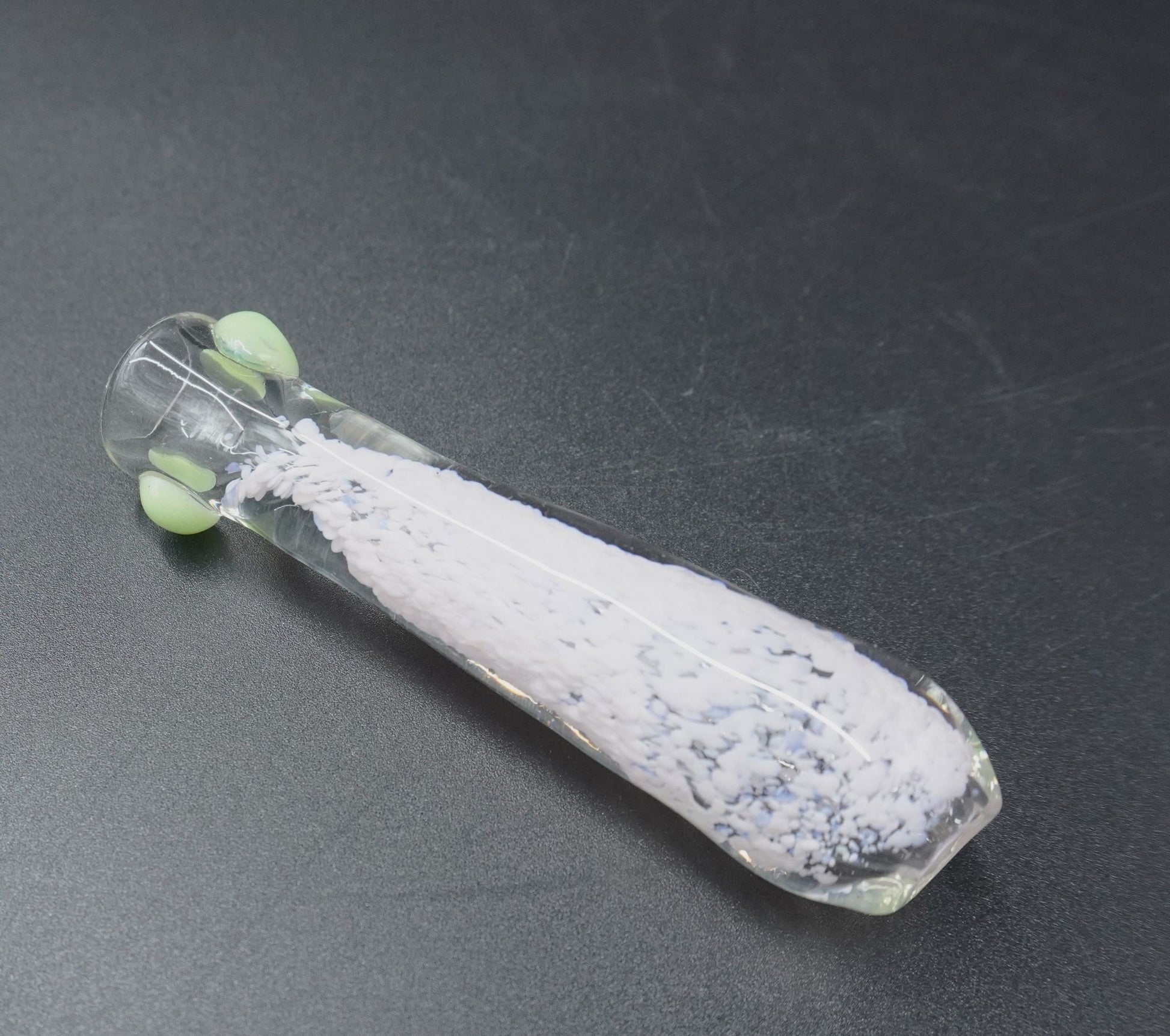 Description: Elevate your sessions with our "Cosmic Frit" Glass Chillum. This sleek, portable taster is hand-blown from high-quality, durable borosilicate glass for a clean and flavorful experience.