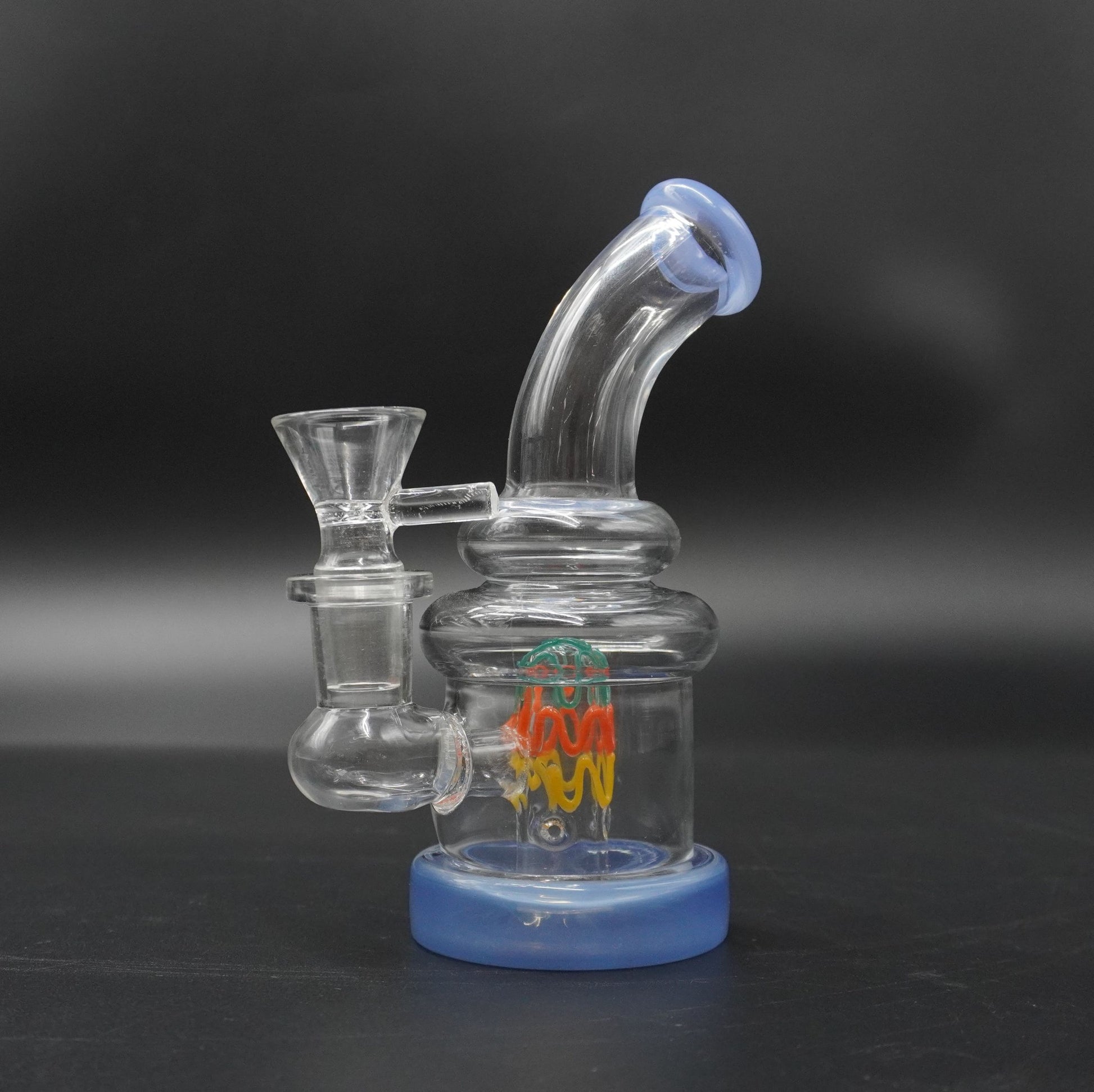 Functionality meets fun with the intricate "wiggle" style percolator, which breaks down smoke for a smooth, flavorful hit without the drag of a larger bong. Whether you choose the cool blues or the rasta-inspired tones, these pieces hit as good as they look.